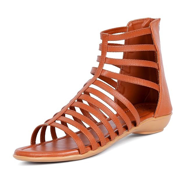 TRASE Flats Gladiator With Zip Closure For Women Sandals| Gladiator High-Tops Sandals For Women | Stylish & Comfortable | College, Office, Shopping, Outdoor & Beach Wear
